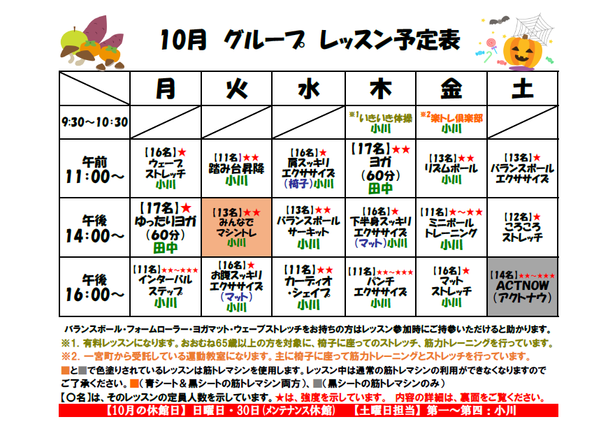グループレッスン予定表(2025年10月)